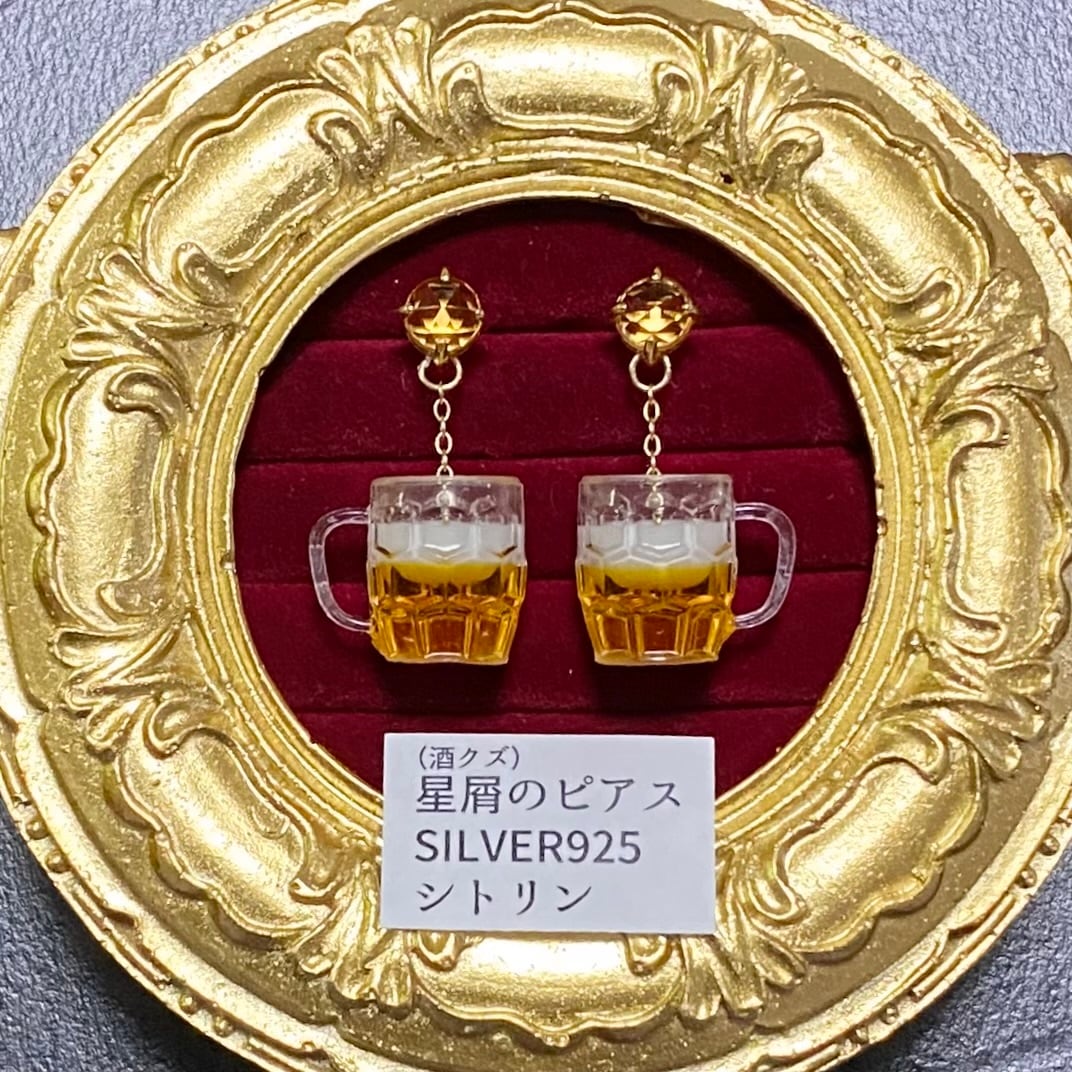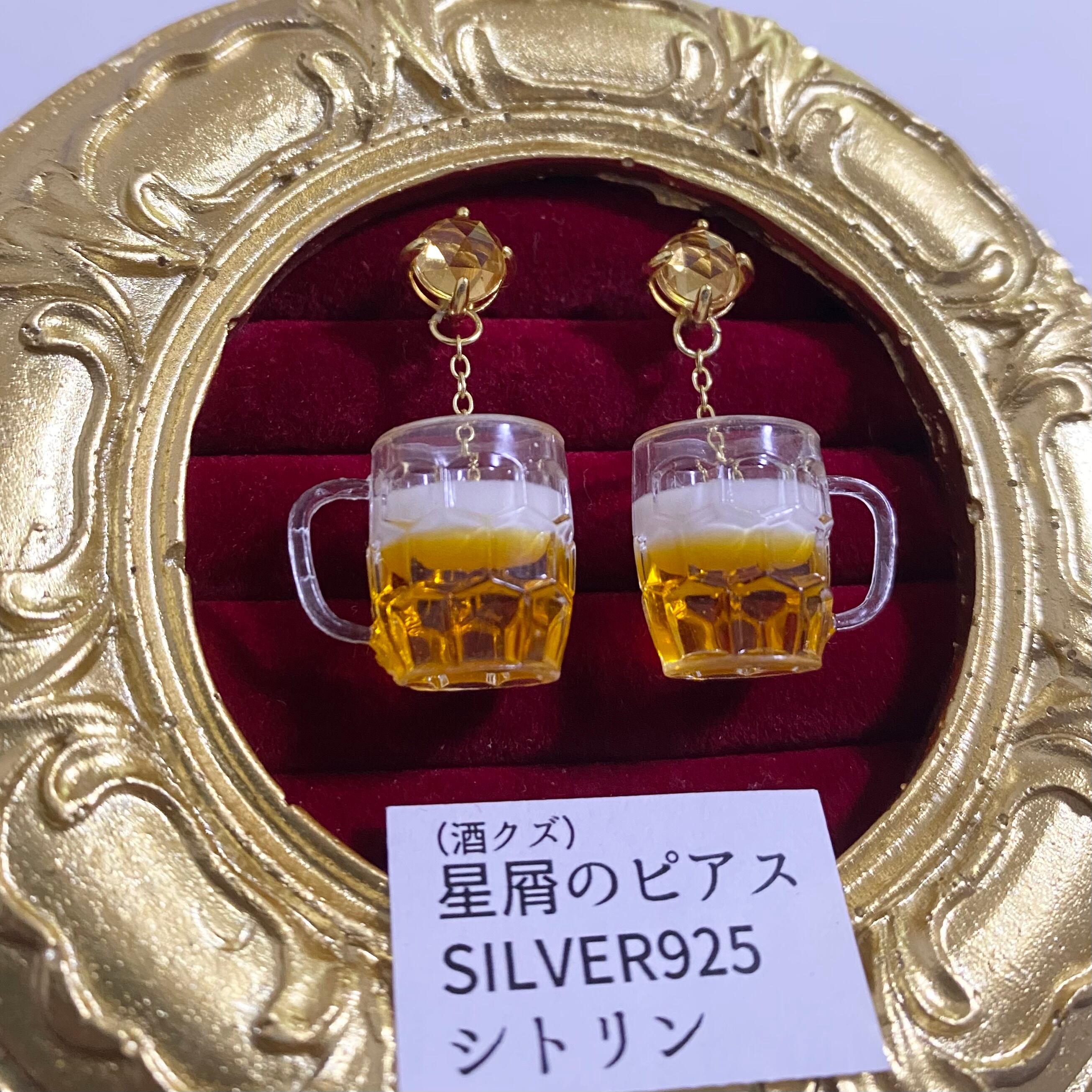 星屑(酒クズ)のピアス 天然琥珀 シトリン