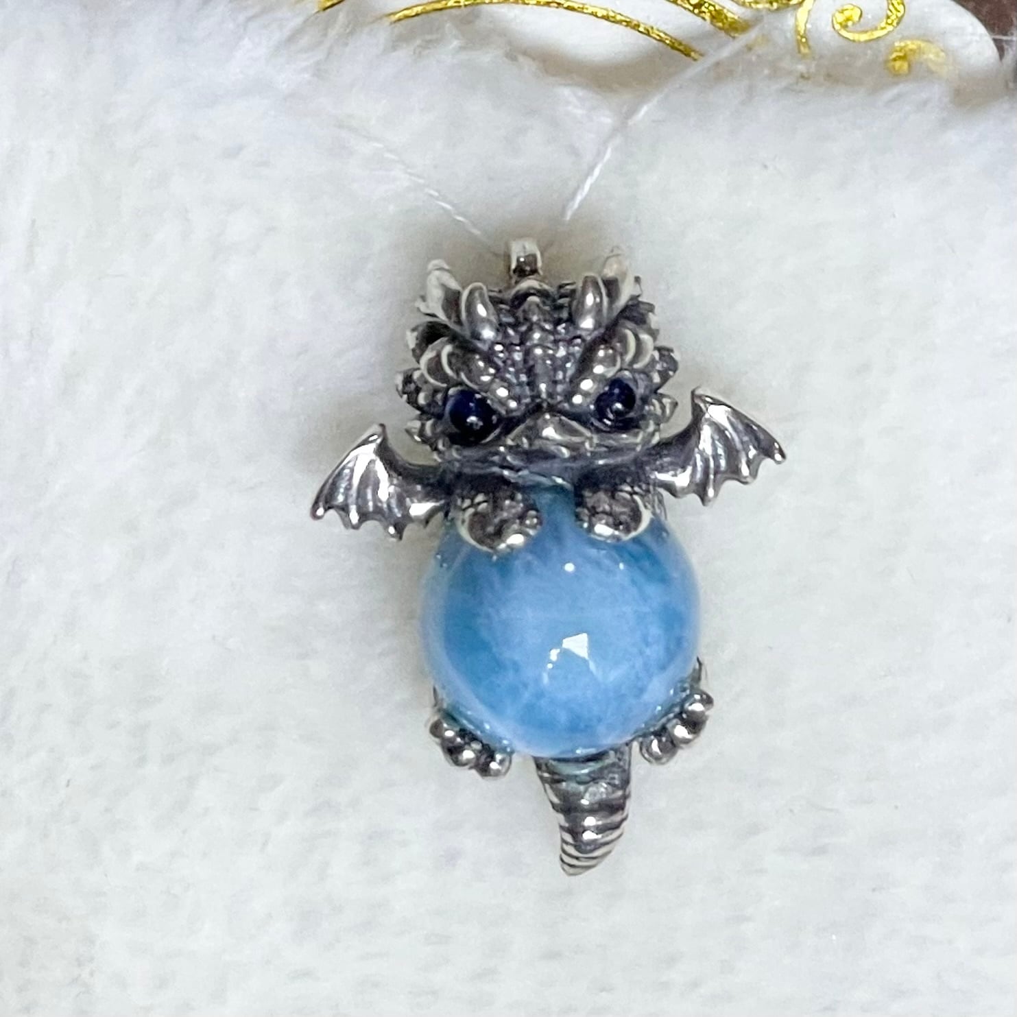 ドラゴンの赤ちゃんのペンダントトップです。 目玉の様な柄のラリマーを使いました。 SILVER925 ラリマー約11.5mm