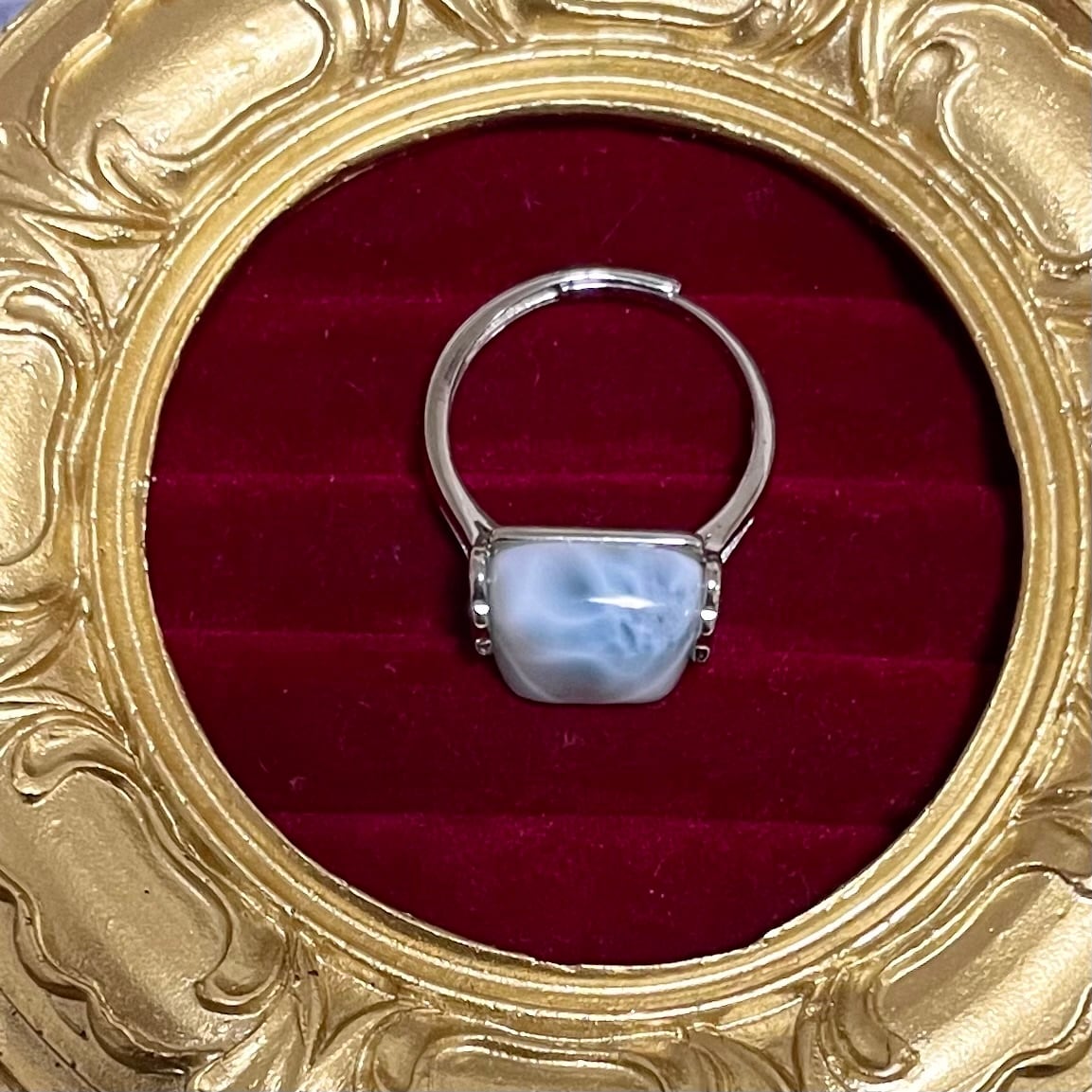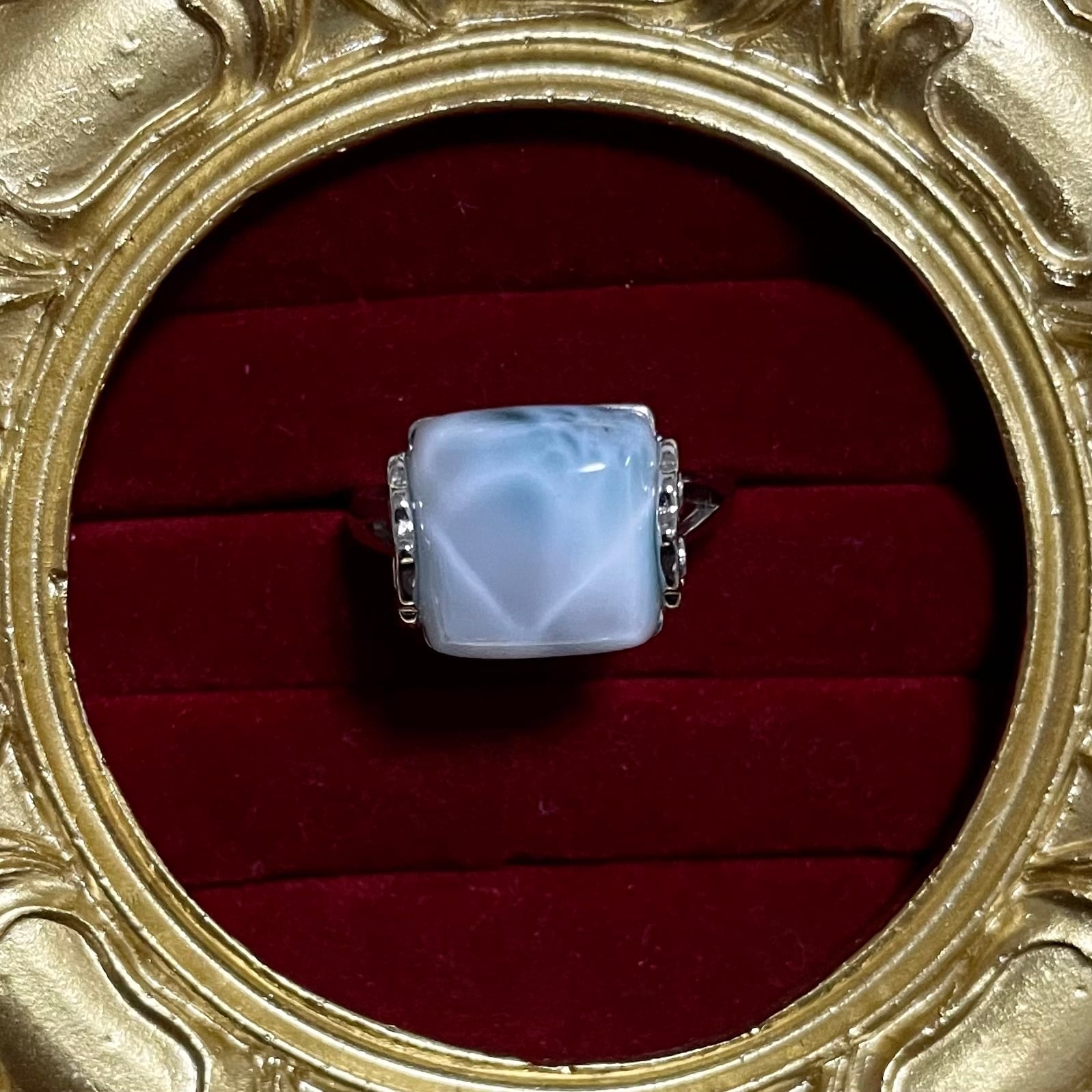 ラリマー シルバー925、フリーサイズ。 色味が多少暗めで緑寄りですが、透明感と模様とヤンシーが含まれており可愛いです!