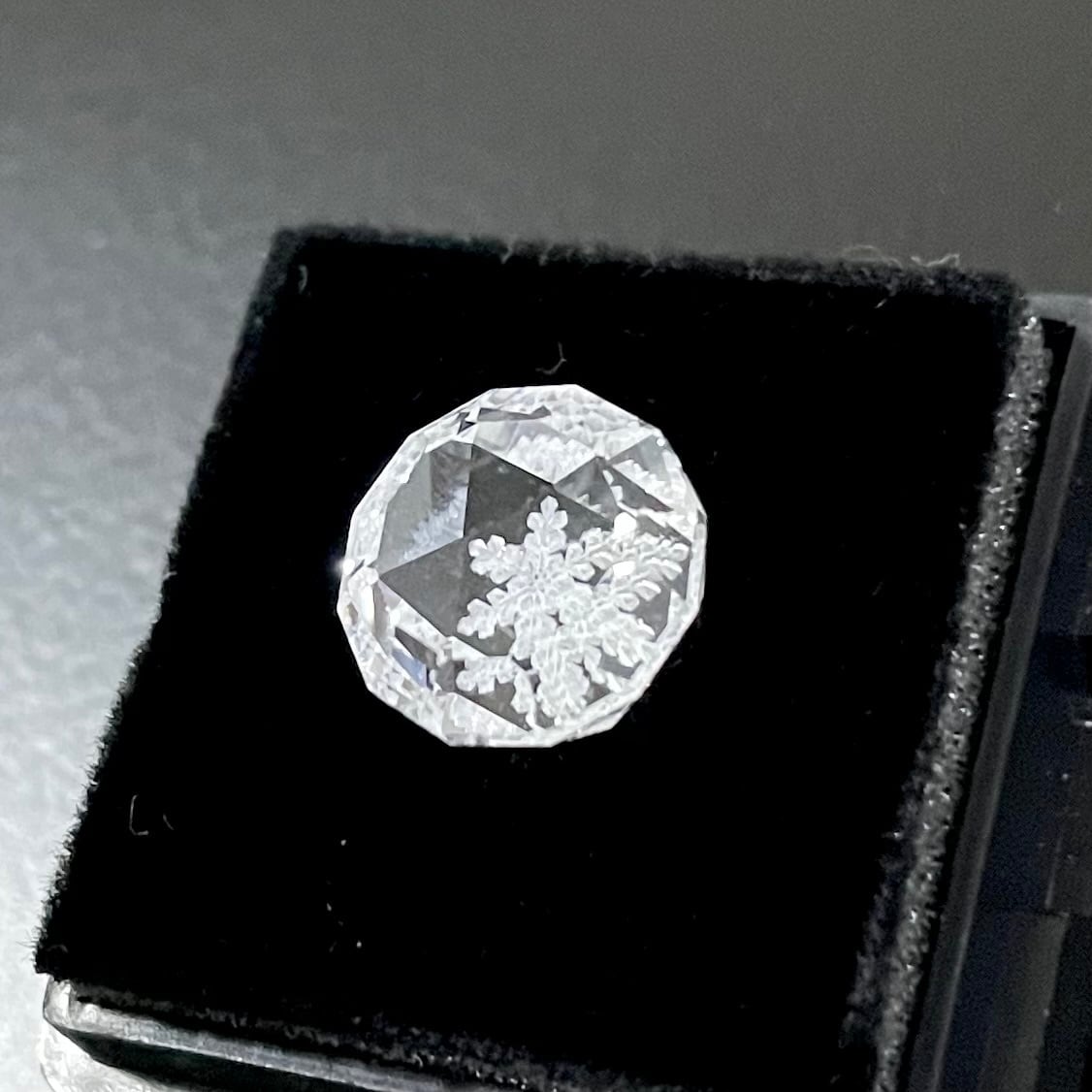 水晶の裏に雪の結晶が彫ってあるルースです。 約10mm。 *ソーティングは1粒抜き出しで取った物ですので付属しません。