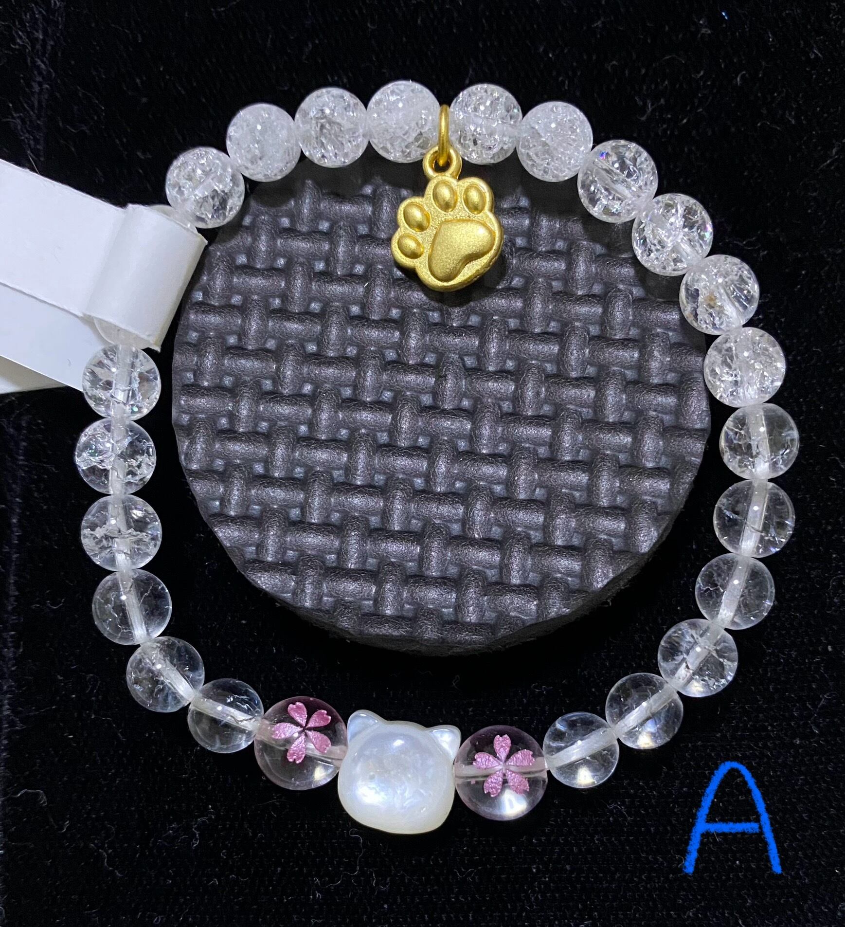 猫と桜のブレスレット 水晶 白猫 天然石 | DONATELLA