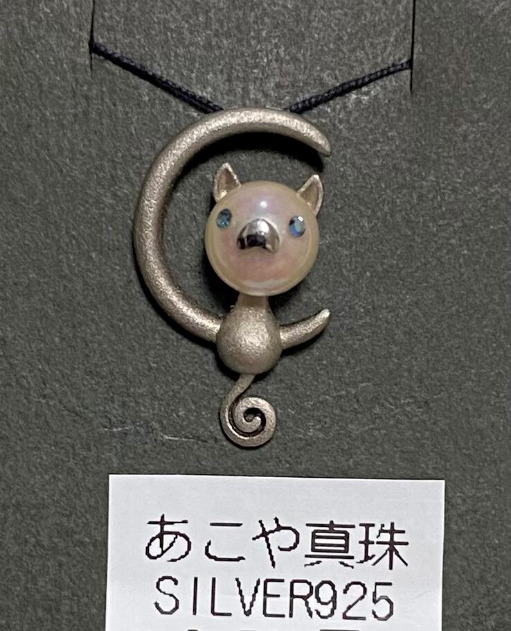 猫のつもりで作りましたが、若干不思議生物寄りになりました。 あこや真珠約8ミリ、シルバー925。 ネコポス発送予定です。