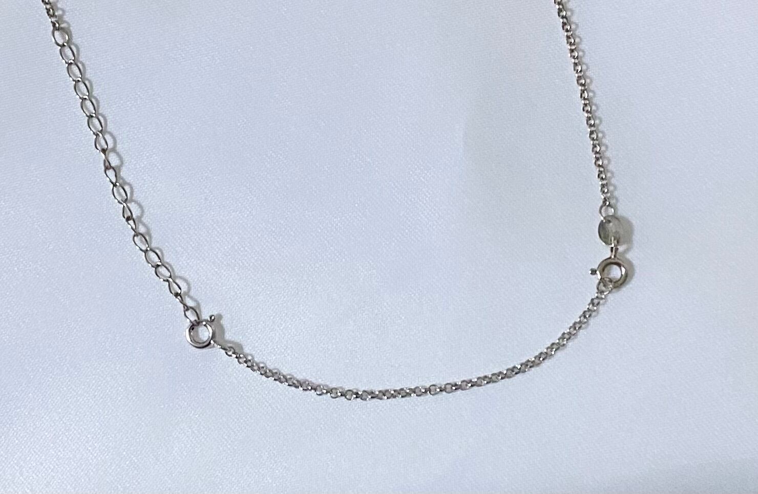 チェーンは41cm(+本体の輪から輪が4.5cm)だったのですが、短いとのご意見がありましたので+7.5cm出来るパーツをお付けします。こちらもsilver925です。