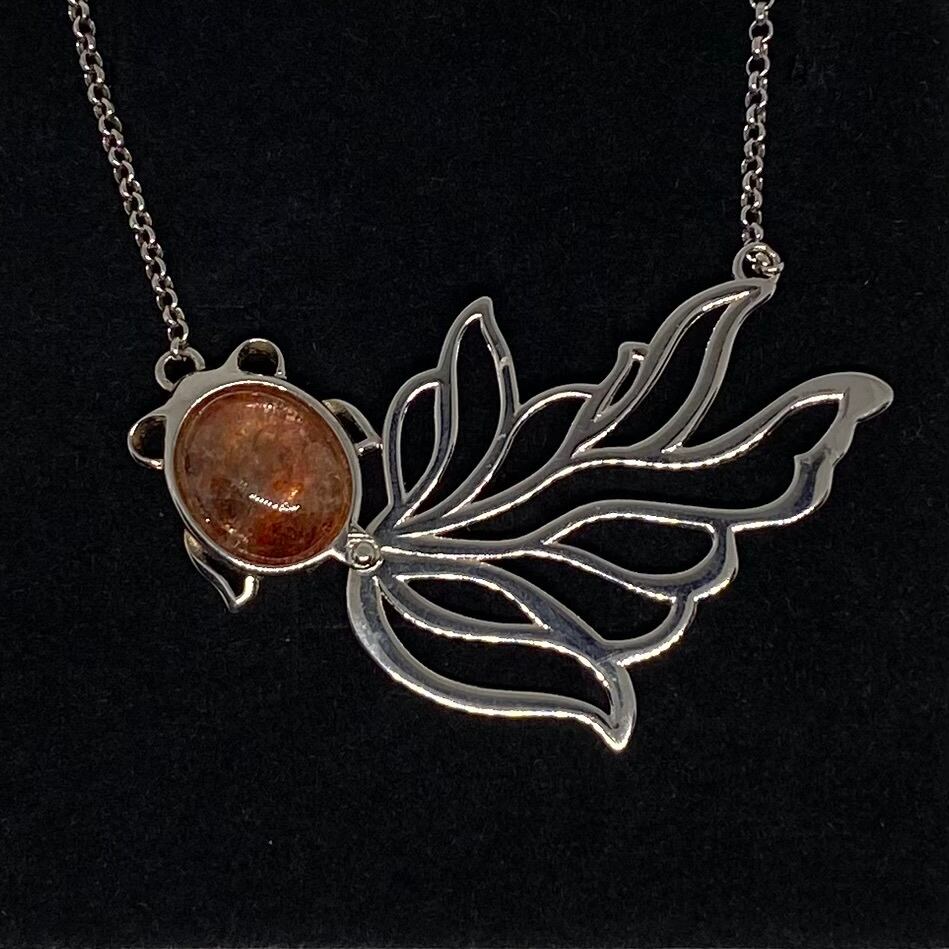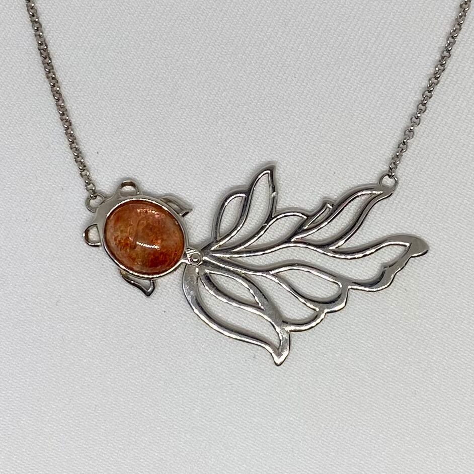 サンストーン 金魚ネックレス silver925 チェーン付き