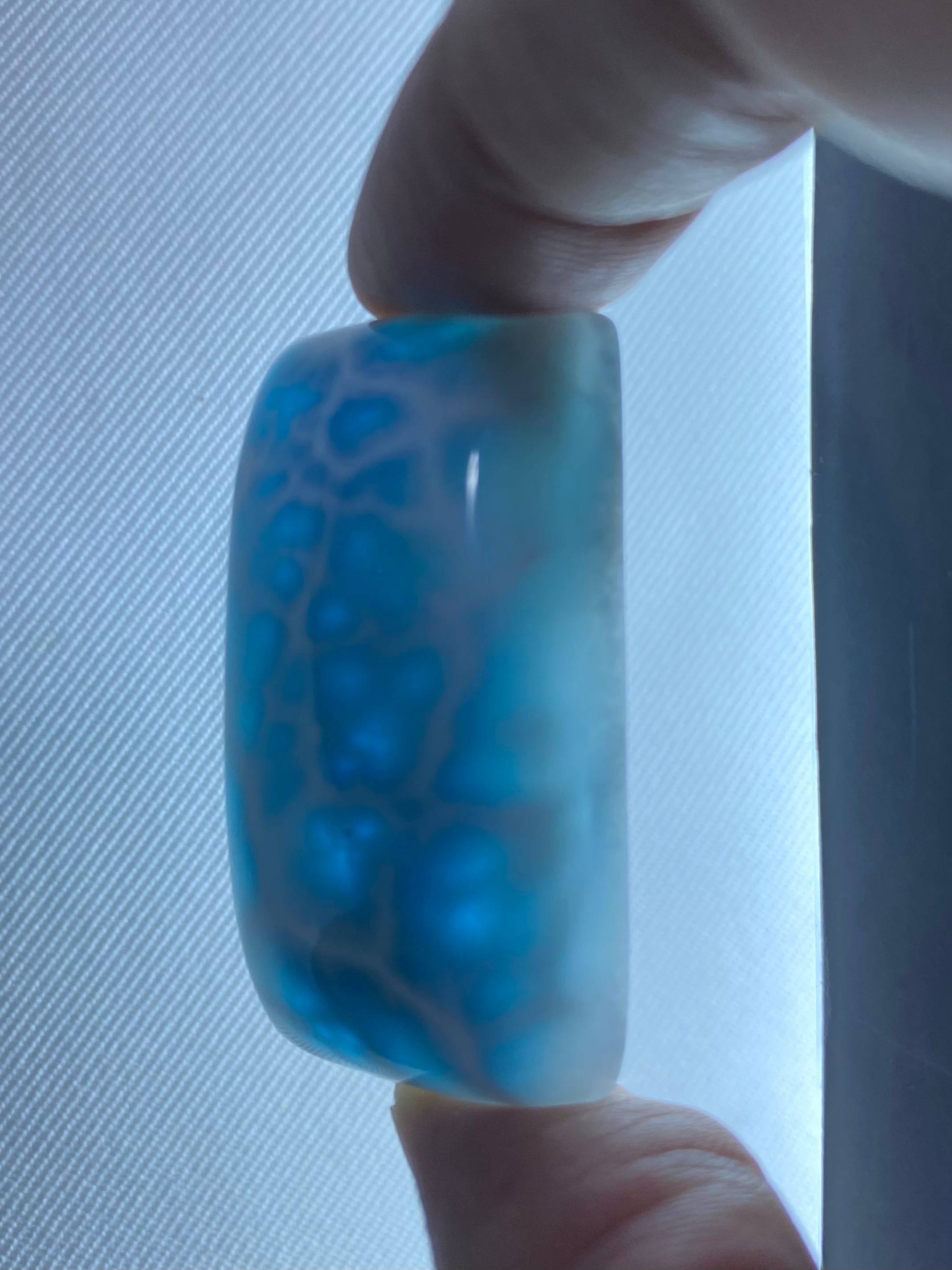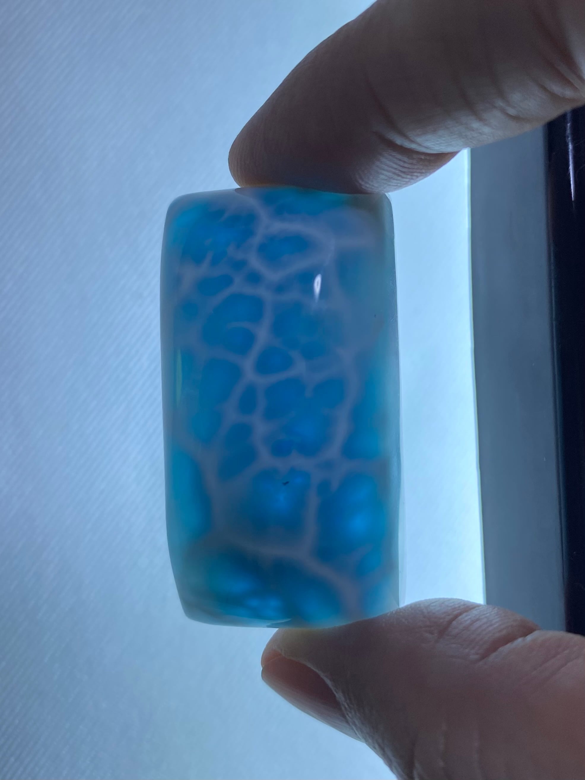 青さ濃いめ・波模様はっきり・透明感とヤンシーもあります。